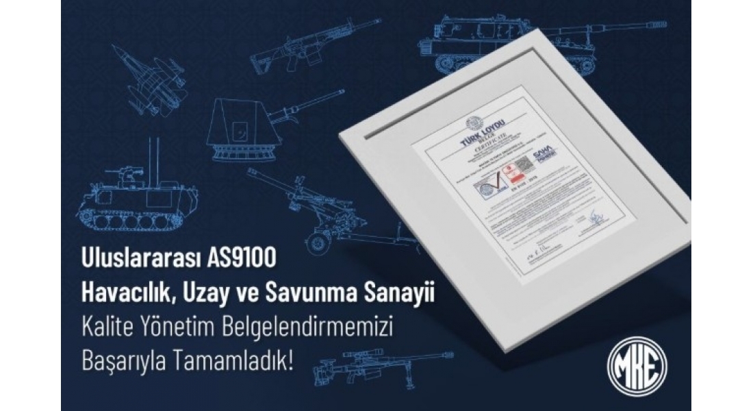 MKE, akredite kuruluş TÜRK LOYDU tarafından gerçekleştirilen denetimi başarıyla tamamlayarak AS9100 Havacılık, Uzay ve Savunma Sanayii Kalite Yönetim Sistemi Standardı Sertifikası almaya hak kazandı.