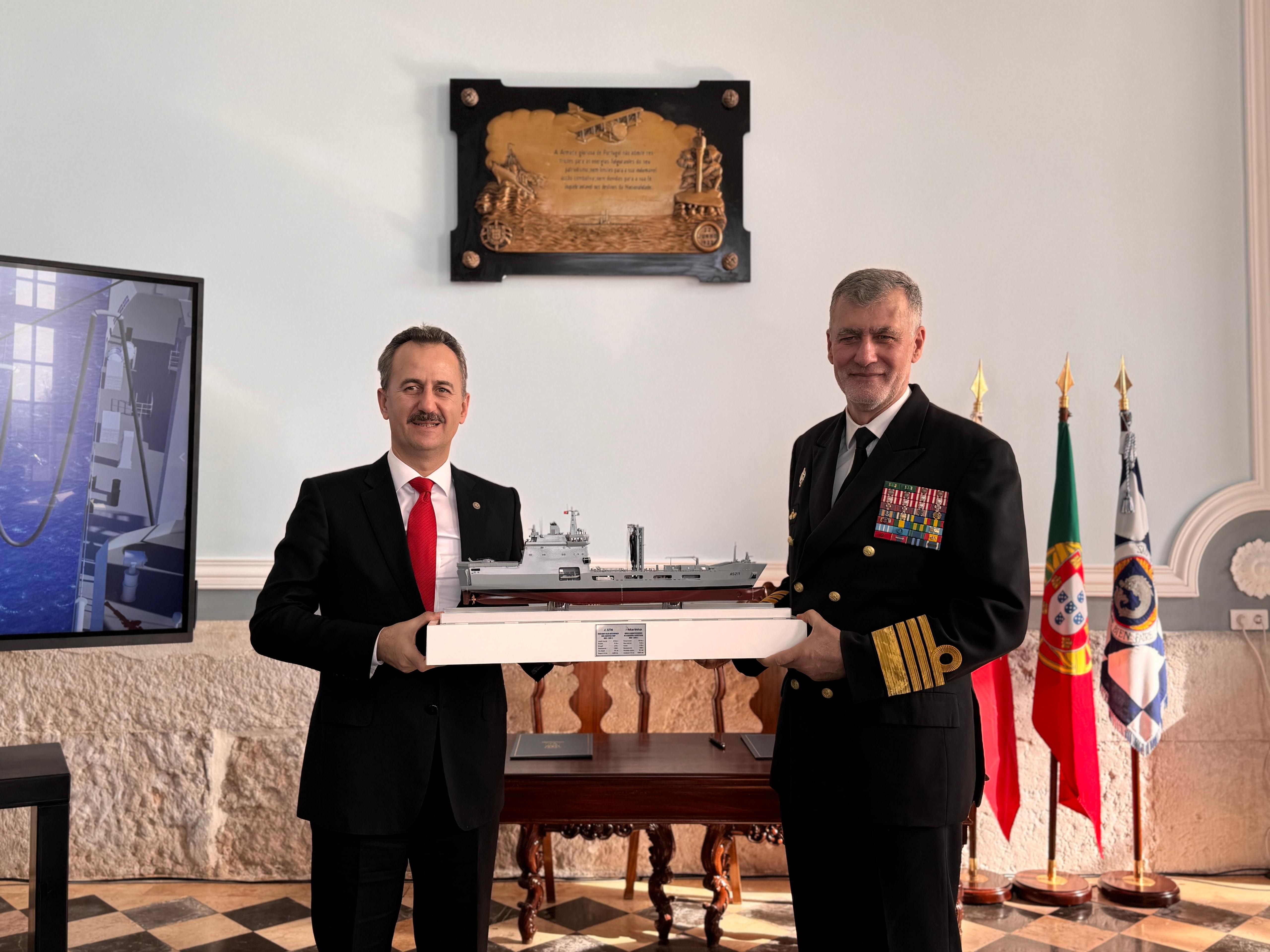 Türkiye ve Portekiz arasında iş birliğini artıracak, Denizde İkmal ve Lojistik Destek Gemisi Projesi’nin Sözleşme imza töreni, Portekiz’in başkenti Lizbon’da 17 Aralık 2024 tarihinde gerçekleştirildi. Törene, Savunma Sanayii Başkanı Prof. Dr. Haluk Görgün, Portekiz Deniz Kuvvetleri Komutanı Adm. Henrique Gouveia e Melo, Portekiz Savunma Sanayii Ajansı (IdD) Carlos Félix, Savunma Sanayii Başkan Yardımcısı Prof. Dr. İhsan Kaya, STM Genel Müdürü Özgür Güleryüz, Türkiye’nin Lizbon Büyükelçisi Haldun Koç, Portekiz Savunma Bakanlığı, Portekiz Deniz Kuvvetleri, Savunma Sanayii Başkanlığı ve STM temsilcileri katıldı.