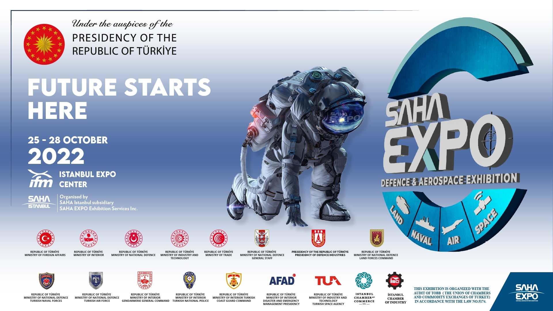 Cumhurbaşkanlığı himayelerinde, Dışişleri Bakanlığı, İçişleri Bakanlığı, Millî Savunma Bakanlığı, Sanayi ve Teknoloji Bakanlığı, Ticaret Bakanlığı ve T.C. Savunma Sanayii Başkanlığı katılım ve destekleriyle düzenlenen, Türkiye’nin yerli üretim potansiyelindeki artışın ve bağımsız üretim gücünün sergileneceği SAHA EXPO Fuarı, bu yıl 50’nin üzerinde ülkeden 1.000’e yakın firmayı bir araya getirmeyi hedefliyor.
