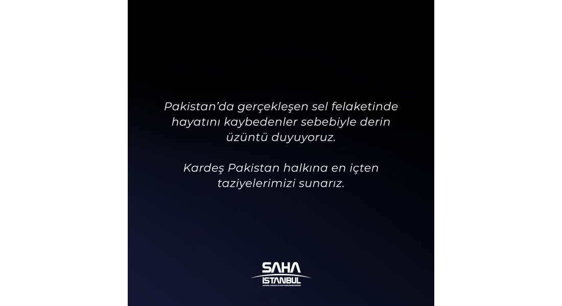 Pakistan’da gerçekleşen sel felaketinde hayatını kaybedenler sebebiyle derin üzüntü duyuyoruz. Kardeş Pakistan halkına en içten taziyelerimizi sunarız.